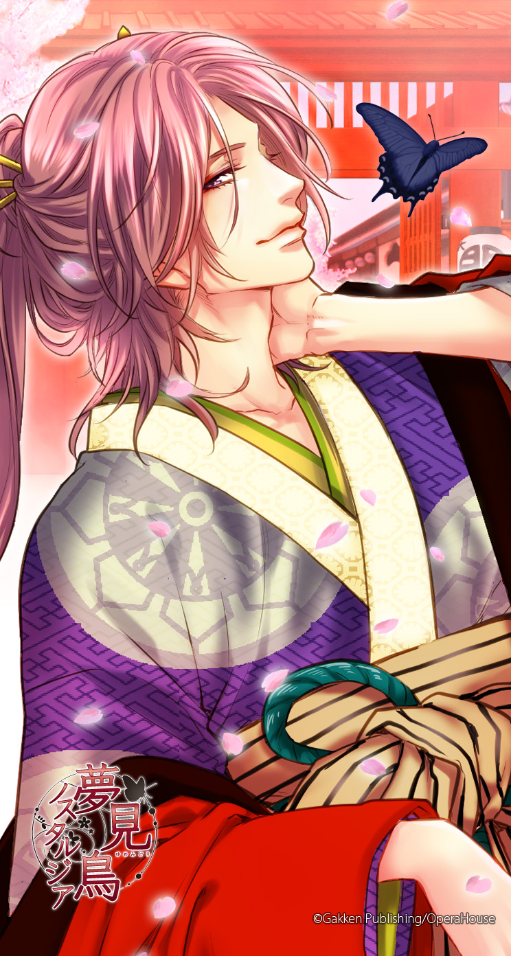 「夢見鳥ノスタルジア」公式サイト。ビジュアル&ボイス付 恋愛ノベルアプリ!【原案・総監修 キリシマソウ】【キャラクターデザイン・原画 相葉キョウコ】吉原は男と女の出会う場所。五十間道で出会った蝶と大門をくぐれば、運命の人と出会えるだろう─